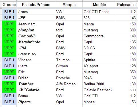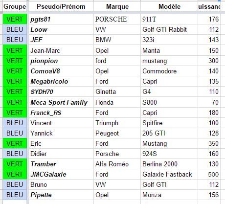 Désolé pour la présentation tardive des groupes, les voilà: Samedi: horaires de roulage session de 20min BLEU: 9h00 - 10h - 11h20 - 13h30 - 15h - 16h - 17h20 VERT: 9h20 - 10h20 - 11h40 - 13h50 - 15h20 - 16h50 - 17h40 Dimanche: horaires de roulage sessions de 15min BLEU 10h - 11h20 - 13h30 - 15h - 16h - 17h30 VERT 10h15 - 11h35 - 13h45 - 15h15 - 16h45 - 17h45