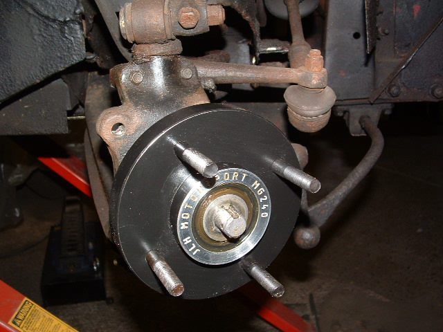 3. Oui c'est le montage que j'ai vu sur une midget, mais c'est surdimensionné, voila ce que cela donne Un montage comme à Jean Marc sur sa midget (type 900 de chez Peter May = disque non ventilé de MG B + cale d'adaptation moyeu, trunion supérieur, bras de direction + étrier de MG B) représente un gain de 25% en plus sur le freinage vis à vis d'un montage standard comme le mien.
