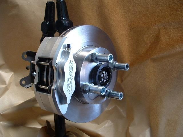 8. Avec l'augmentation du diamètre de disque je suis pas sur que l'étrier puisse le prendre en charge, on passe de 210mm à 240mm quand même. Sinon pour donner un idée de ce à quoi je pense le disque est serré sur la cale en alu par derrière, le moyeu est serré sur la cale en alu par devant. C'est un kit vendu chez Fronline et qui utilise des étriers de MG B, plus gros que ceux de midget. Mon principe est d'utiliser les disques ventilés d'escort qui sont quasi de la même épaisseur totale que les disques de midget (58.1mm pour l'escort, 59.5mm pour la midget), j'ai pas encore vérifié les largeurs d'un demi étrier de frein, mais pour moi y a pas besoin de cale en alu. Un kit d'escort mk1 est quand même moins cher que le kit JLH, il suffirait juste de faire percer le disque au bon PCD et de faire la platine de fixation de l'étrier, avec un peu de chance, peut être que celle vendu pour escort mk1 passe sur le support de moyeu de la midget http://www.burtonpower.com/brake-kit-r-english-axle-240mm-dynalite-rdbk3.html (351£)