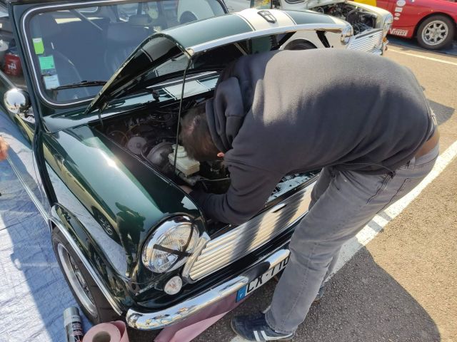 La dernière fois que la mini avait mis les roues sur circuit remonte à Magny Cours Club avec l'arrachement du tablier au niveau du tirant moteur, cet épisode l'a immobilisé de nombreuses années et sa restauration en carrosserie était méritée, cela va faire un an qu'elle a repris du service sur les routes mais le circuit cela remonte à environ 9 ans... il était grand temps de s'y remettre.