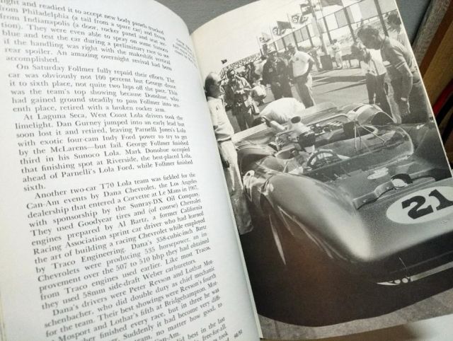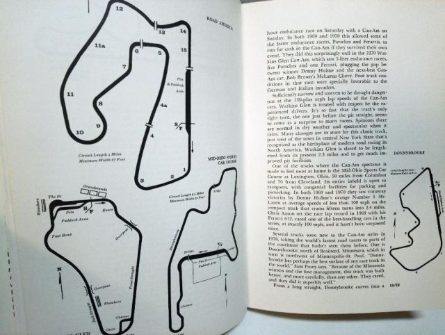 Un bon condensé du début de l'histoire de la CanAm (livre publié en 1971 donc avant les victoires de Porsche). Group 7 - The Worlds Most Powerful Road Racing Cars (Karl Eric Ludvigsen) Ca parle des circuits, des pilotes et des voitures. Bien évidemment, une grosse partie traite des McLaren et de Bruce McLaren, mais on a toute la bande avec Lola, Ferrari, Chaparral, Hulme, Surtees, Donohue, Oliver, Gurney etc... Une bonne entrée en matière