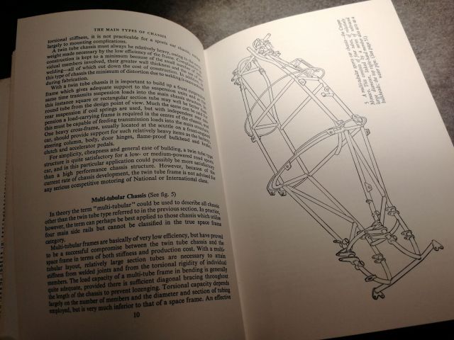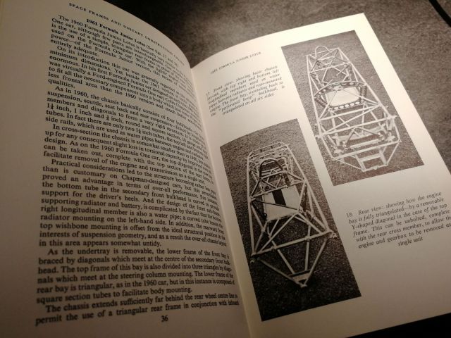 Racing And Sports Car Chassis Design - Michael Costin et David Phipps Après avoir lu ce livre vous aurez envie de fabriquer votre propre monoplace! Ca tombe bien, il y a tout le processus de réflexion pour tracer les premier traits et faire tous les calculs aux différents points d'ancrages, ainsi que la méthode pour définir la géométrie de base. On comprend ici le cheminement de la conception de l'architecture d'une voiture. Des châssis étudiés en déterminant leurs points forts et leurs points faibles (Cooper, Lister Jaguar, Maserati Birdcage, Lotus 18, Lotus 25...). Un incontournable