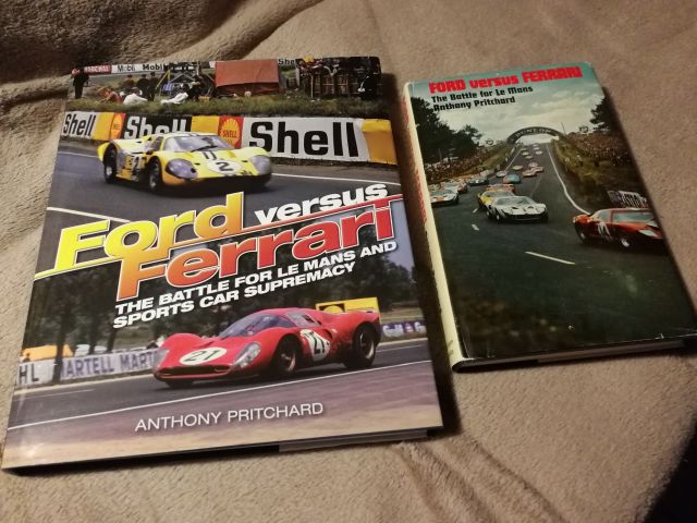 Il a l'air intéressant en effet. J'ouvre l'œil, si je trouve je prends. Un autre livre intéressant après avoir vu Le Mans 66 pour bien faire la part des choses entre ce qui est réalité et ce qui est fiction. Et surtout, comprendre que certains personnages centraux sont absents de l'histoire hollywoodienne. Voici l'édition originale et l'édition révisée. La seconde est beaucoup plus intéressante car le texte est agrémenté de très nombreuses photos. Ford versus Ferrari - The battle for Le Mans and Sports Car supremacy - Anthony Prichard
