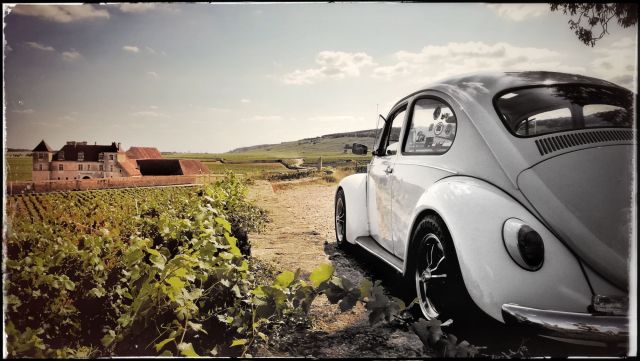 Ma Cox de 68 devant le clos Vougeot ici en Côte d'or. Entouré des plus beaux grands crus de la région.. Romanet conti Richebourg Grand eschezeau ...