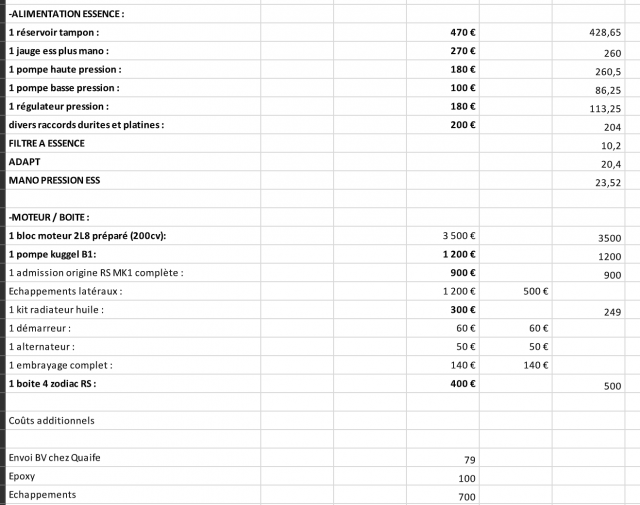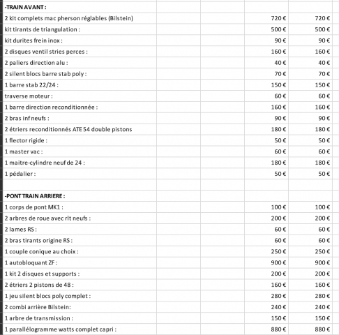 Bonjour messieurs/dames, Un copain va mettre en vente sa Ford capri montée en Groupe 2 très bientôt. Je la récupère en vente chez CarJager dans les semaines à venir. Je me permets de vous en parler ici avant qu'elle soit chez un pro et que je ne puisse plus la poster ici. La voiture est neuve, beaucoup de frais engagés dans la prépa. J'aurai le dossier complet dans les jours qui viennent, mais si quelqu'un est intéressé, il peut m'appeler au +33604171370! On serait aux alentours des 79.000€, mais il est ouvert aux offres sérieuses et raisonnables bien évidemment Vous trouverez un récapitulatif de ce qui a été fait ainsi que quelques rapides photos. En espérant qu'on se croise à Pouilly! A+