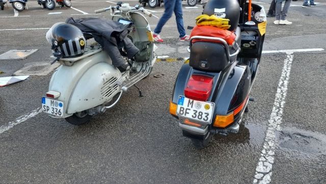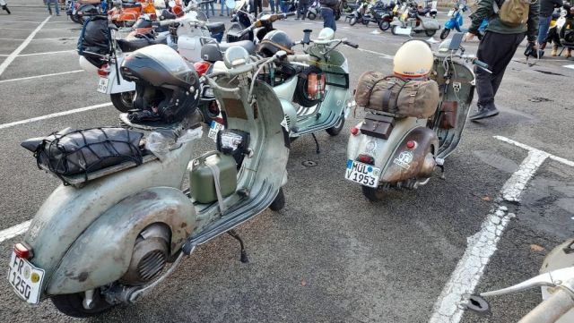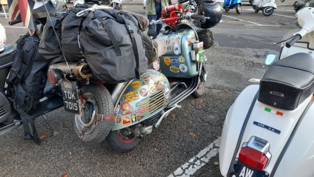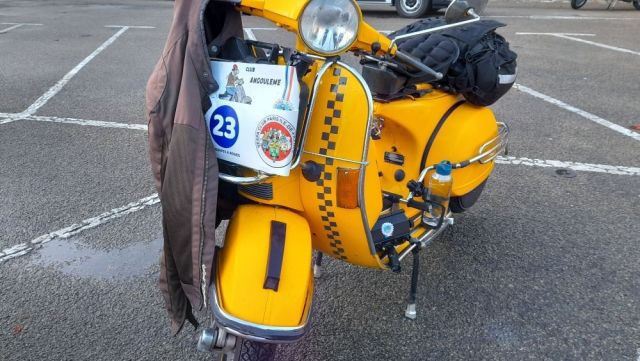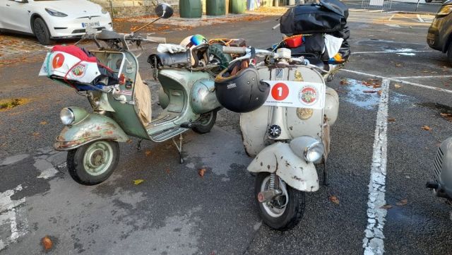 Ce matin je suis allé voir le départ du premier Paris Brest en scooter . Il s'agit d'un rallye de régularité par équipe de deux ou trois scooter. Le départ était à Rambouillet et l'étape de ce soir à St Malo . La moyenne doit être de 45 km/h , pas simple si on compte les pauses , les ravitaillements humain et mécanique sans compter les éventuelles pannes. La deuxième étape les emmènera de St Malo à Brest. Il y avait un équipage féminin , deux équipages allemand , et un équipage Anglais dont un membres est arrivé pendant le briefing , sous un tonnerre d'applaudissement. Super ambiance . Demain je serai au trophée Gérard Jumeaux sur le circuit Carole ou mon fils et mon p'tit fils font leurs début en side. Jumo Trophy - Officiel