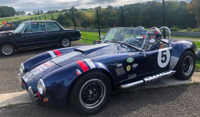 avec le sourire,qui nous transmettre leur bonne humeur sur ce magnifique circuit , un régal et premiers tours de piste pour Madame au volant du Cobra Magnifique plateau de belles voitures ..........vive le thermique ...........Amica Le Mans