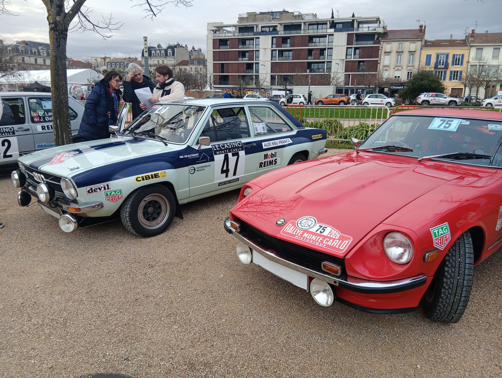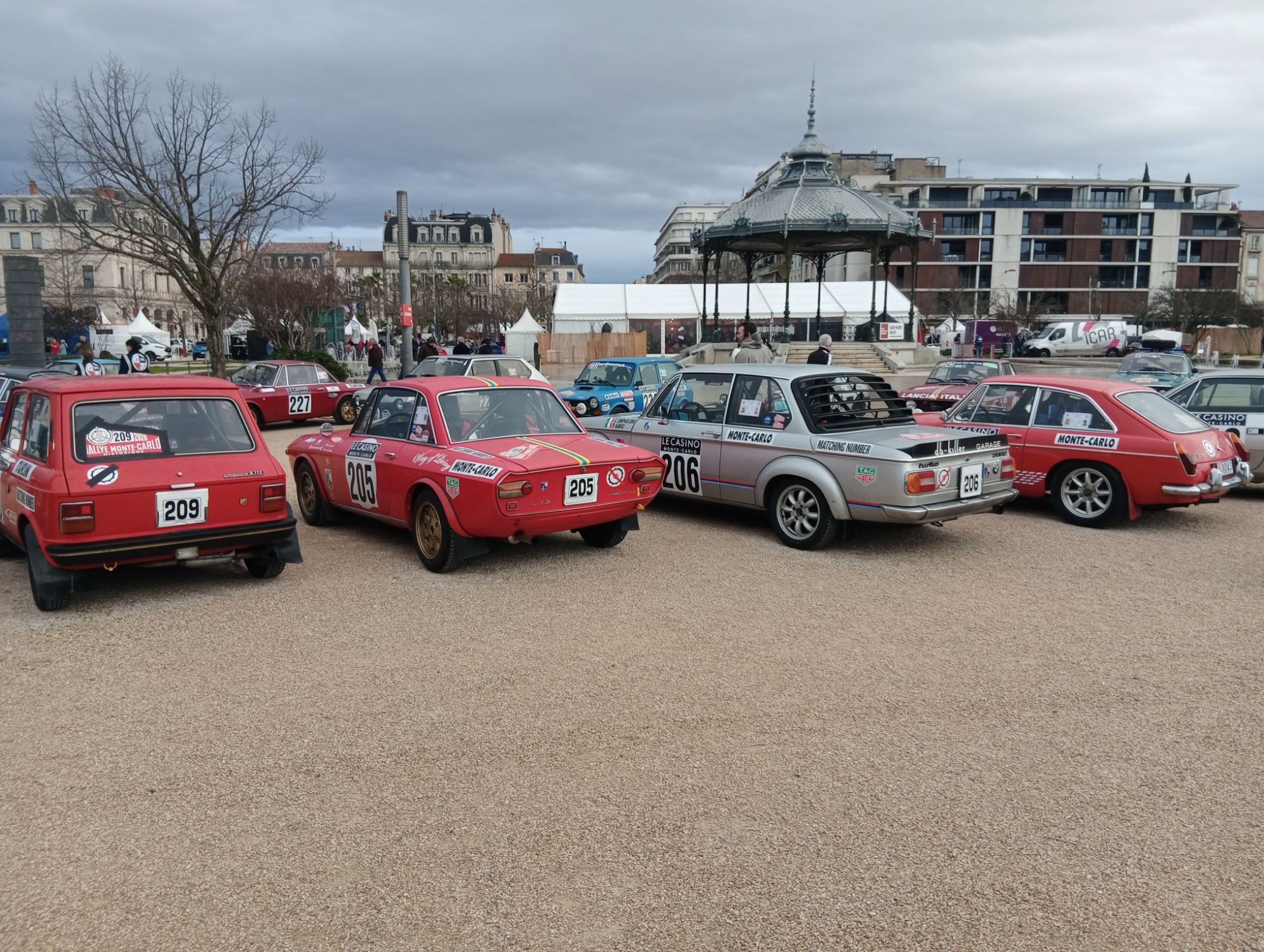 Vettefab Posted yesterday at 05:43 PM Report Posted yesterday at 05:43 PM Bonjou Ratous ! Lundi soir je remontais tranquillement de Martigues avec la Barracuda. Après m'être fait interviewé par FR3 alors que je remettais quelques litres à la station BP d'Etoile les Valance sur l'ancienne RN7, me remettant de la surprise, au milieu de la circulation de Valence aux heures de pointe, je croise une Simca Rallye, puis une Fulvia, et plus loin je me fais doubler par une Mini tandis qu'une Triumph me suis ! Je remarque alors la plaque rallye, je dis à ma femme de regarder sur le web si le Monte-Carlo historique était à Valence ce soir, effectivement, c'était l'arrivée des étapes de concentration ! On les a suivi et avons passé une petite heure à faire le tour du parc fermé sur le Champ de Mars, je serais bien resté quelques jours à Valence, mais bon, faut bien retourner au bercail... Du coup je vous mets quelques photos. Quote